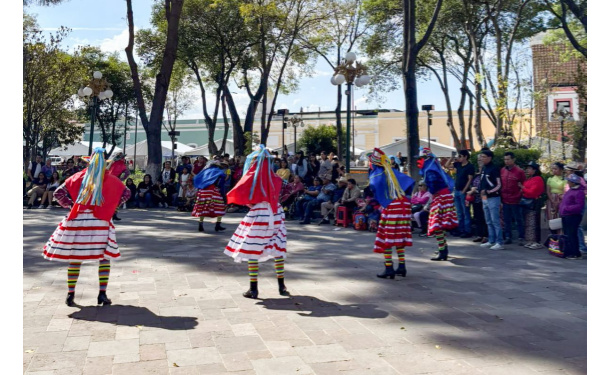 385 Grados / Tlaxcala / REDACCIÓN / La Plaza de la Constitución se convirtió este domingo en un escenario de color, música y tradición con la Muestra de Ballet Folklórico del Día de Muertos, organizada por el Ayuntamiento de la capital como parte del Festival de la Vida y la Muerte.