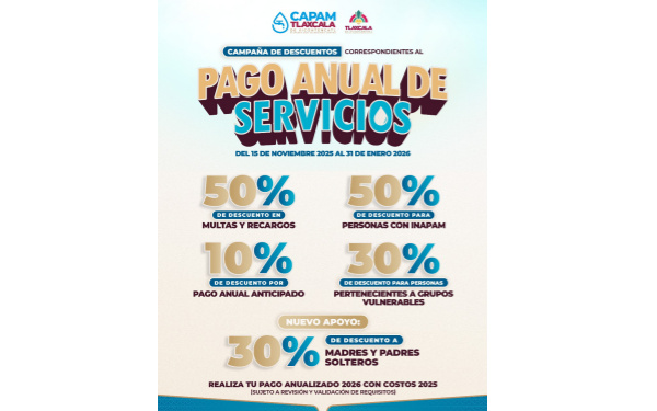 Sobre el tema, el alcalde Alfonso Sánchez García destacó que esta acción busca impactar de forma positiva la economía de los tlaxcaltecas, al ofrecer un 50 por ciento de descuento en multas y recargos, además de beneficios especiales en el pago anual a personas adultas mayores con credencial del INAPAM, con el objetivo de aliviar la carga económica y promover el cumplimiento responsable en los servicios municipales.