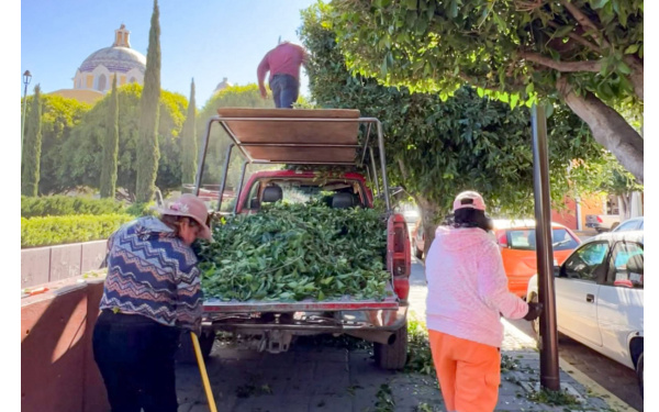 385 Grados / Tlaxcala / REDACCIÓN / El Gobierno Municipal de Tlaxcala, que encabeza Alfonso Sánchez García, continúa con las acciones de mantenimiento urbano para garantizar espacios públicos seguros y funcionales, por lo que la Dirección de Servicios Públicos llevó a cabo una jornada de poda en la emblemática Plaza Juárez.