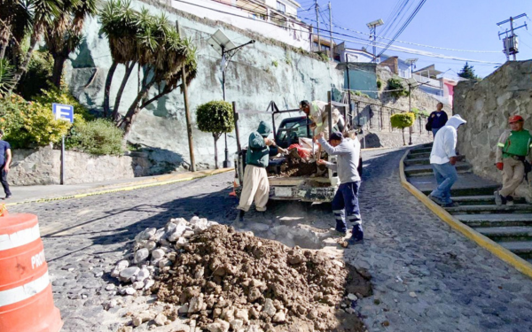 De igual manera, en calle 6, entre calle 33 y calle 31, también en la colonia de La Loma Xicohténcatl, se realizó un sondeo preventivo para descartar la presencia de fugas o fracturas en la red hidráulica, tras la revisión, no se detectaron daños, por lo que el área intervenida fue rellenada con material pétreo y se procedió al acomodo del adoquín para restablecer la superficie.