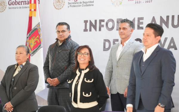 Durante este informe, la gobernadora Lorena Cuéllar Cisneros hizo un reconocimiento al trabajo conjunto de las instancias estatales y federales que han llevado a Tlaxcala a ser el estado más seguro del país.