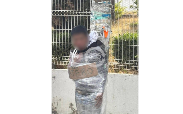 El hombre fue emplayado y sujetado a un poste por varios minutos.