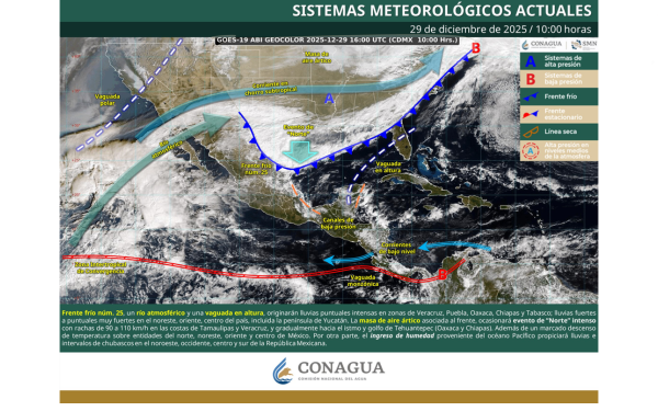 385 Grados / Tlaxcala / Monserrat Hernández / Tlaxcala registrará en los próximos días un marcado descenso de temperaturas, así como la presencia de lluvias y chubascos, debido a la influencia del frente frío número 25 y una masa de aire ártico que ingresará a la región durante la madrugada del 30 de diciembre.