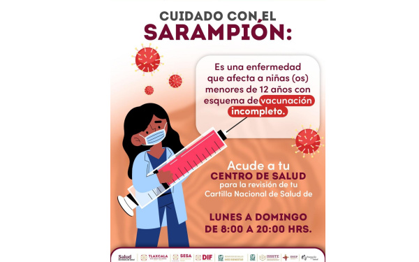 385 Grqdos /Tlaxcala / REDACCIÓN / El uso de cubrebocas, el lavado frecuente de manos y la aplicación de medidas preventivas recomendadas por el sector salud reducen de manera significativa el riesgo de contagio de sarampión en la entidad, afirmó el secretario de Salud, Rigoberto Zamudio Meneses, quien subrayó que se mantiene activa la jornada de vacunación dirigida a niñas y niños de seis meses a seis años.