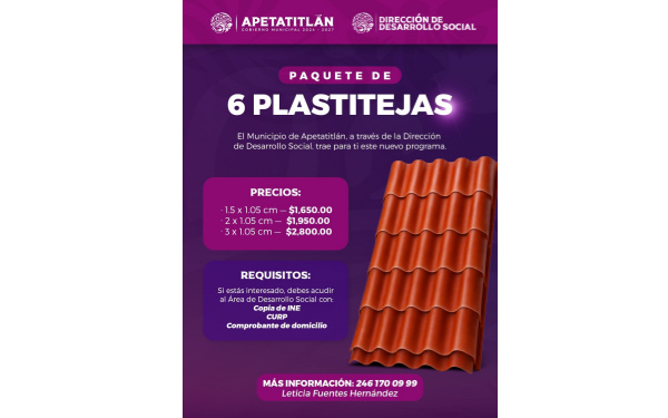 Ayuntamiento de Apetatitlán lanza programa de apoyo para adquisición de plastitejas