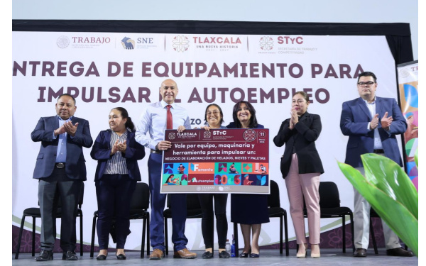 385 Grados / Tlaxcala / REDACCIÓN / La gobernadora Lorena Cuéllar Cisneros encabezó la “Entrega de Equipamiento para Impulsar el Autoempleo” como parte del subprograma de la Secretaría de Trabajo y Competitividad (STyC), a través del Servicio Nacional de Empleo Tlaxcala (SNET), estrategia que brinda herramientas para iniciar o consolidar un negocio propio y fomenta la formalización, generación de empleos dignos y el impulso de la economía local.