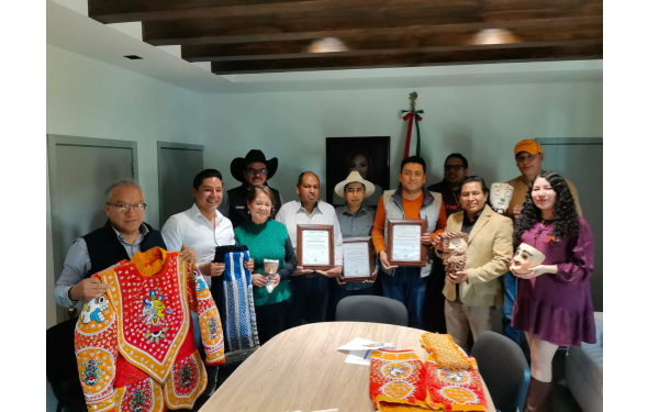 En la Presidencia Municipal, el Alcalde David Vega Terrazas, entregó reconocimientos a Carlos Gómez Vásquez, artesano de madera, Juan Antonio Serrano Muñoz y Aldo Filemón Morales Jiménez, ambos dedicados al bordado y confección de trajes de carnaval.