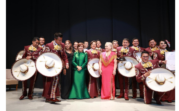 La gobernadora Lorena Cuéllar y la presidenta de la Asociación Nacional de Locutores, Rosalía Buaún Sánchez encabezaron la entrega del Micrófono de Oro 2025 a al Coro Yumhú de Ixtenco, a Humberto Cravioto, cantante vernáculo y tenor; Fernando Sánchez Nava; atleta tlaxcalteca paralímpico.