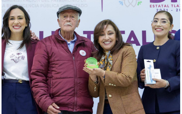 385 Grados / Tlaxcala / REDACCIÓN / Con el compromiso de mejorar la salud y fortalecer la confianza y autoestima de las personas mayores en la entidad, la gobernadora Lorena Cuéllar Cisneros encabezó la entrega de 330 prótesis dentales totales a beneficiarias y beneficiarios de los 60 municipios de Tlaxcala.