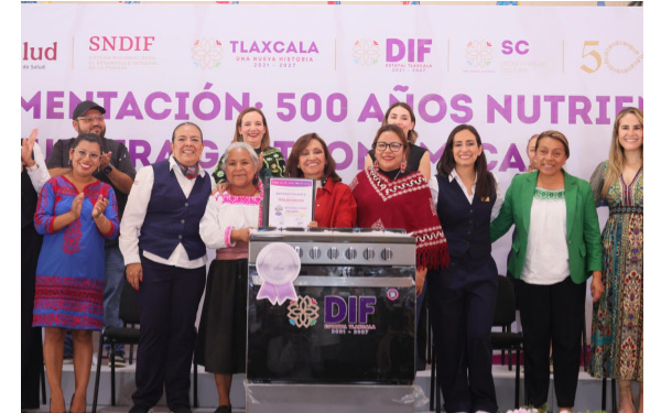 385 Grados / Tlaxcala / REDACCIÓN / La gobernadora, Lorena Cuéllar Cisneros; la presidenta honorífica del Sistema Estatal para el Desarrollo Integral de la Familia (Sedif), Mariana Espinosa de los Monteros Cuéllar, y la titular del Sistema Nacional DIF (Sndif), Rocío García Pérez, inauguraron la muestra gastronómica “500 años nutriendo con sabor”, en el marco de la conmemoración del Día Mundial de la Alimentación 2025 y de la celebración por los 500 años de la Fundación de la Ciudad de Tlaxcala.