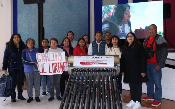 385Grados / Totolac / REDACCIÓN / El Gobierno del Estado de Tlaxcala realizó la entrega de calentadores solares a familias del municipio, en un evento encabezado por la gobernadora Lorena Cuéllar Cisneros, acompañada del presidente municipal de Totolac, Benjamín Atonal Conde.