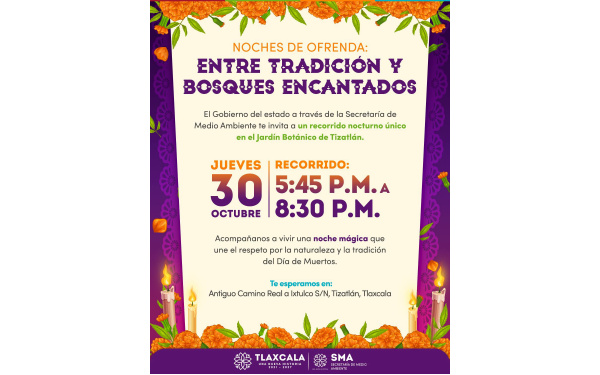 Con “Noches de Ofrenda”, la Secretaría de Medio Ambiente reafirma su compromiso con la preservación del entorno, la promoción de la conciencia ecológica y el fortalecimiento de nuestras raíces culturales, invitando a las familias tlaxcaltecas a celebrar la vida desde el respeto por la naturaleza.