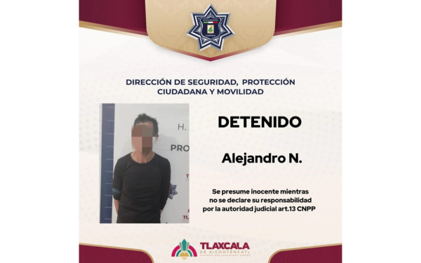 El presunto responsable, identificado como Alejandro “N”, de 50 años de edad y vecino de La Joya, fue asegurado luego de que intentara sustraer objetos de un negocio ubicado en la calle Leonarda Gómez Blanco, en Acxotla del Río, municipio de San Juan Totolac.
