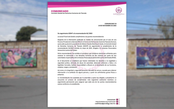 385 Grados / Tlaxcala / REDACCIÓN / Ante las diferentes acciones de supervisión escolar, implementadas en instituciones educativas de los niveles básico y medio superior de la entidad, la Comisión Estatal de Derechos Humanos de Tlaxcala (CEDHT) reitera que dichas acciones, conocidas como “operativos mochila”, deben alinearse con los estándares nacionales e internacionales que garantizan el respeto irrestricto a los derechos de Niñas, Niños y Adolescentes (NNA).