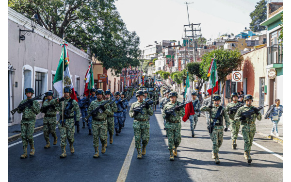 Por parte del agrupamiento del Ejército, Fuerza Aérea y Guardia Nacional, participaron cinco banderas nacionales, 364 elementos y 29 vehículos; de la Secretaría de Seguridad Ciudadana (SSC), 80 elementos, tres vehículos, dos motobombas y una ambulancia; de las distintas dependencias gubernamentales, 131 elementos, cinco vehículos y 10 entrenadores; y del sector educativo, 15 planteles, 441 docentes, dos mil 051 estudiantes y dos vehículos,
