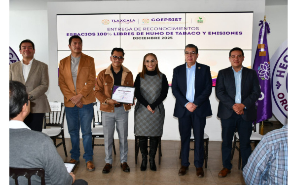 Durante la entrega de reconocimientos, la titular de la Coeprist, Mónica Yazmín Jiménez Gutiérrez, destacó que la iniciativa cumple con las políticas del Gobierno de México y del gobierno de Lorena Cuéllar Cisneros, orientadas a evitar la exposición involuntaria al humo de tabaco y a las emisiones de vapeadores, una de las principales causas de enfermedades prevenibles a nivel mundial.