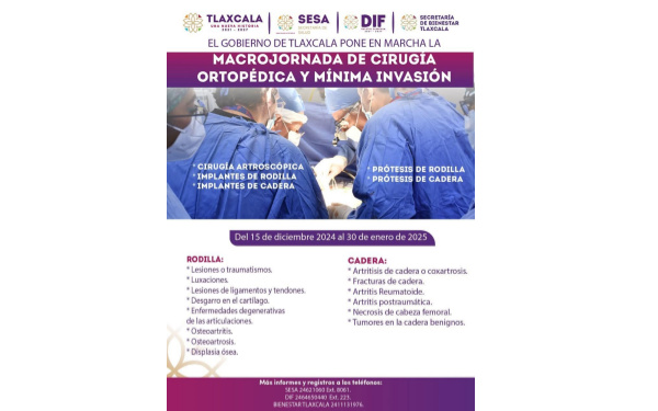 Las cirugías que realizarán son para padecimientos luxaciones, lesiones o traumatismos, desgarro en el cartílago, enfermedades degenerativas en las articulaciones, osteoartritis, osteoartrosis, displasia ósea.