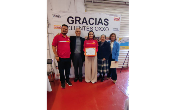 También reconoció la labor de los trabajadores de OXXO, a quienes entregó un reconocimiento y un obsequio a manera de agradecimiento por contribuir en el programa de redondeo.