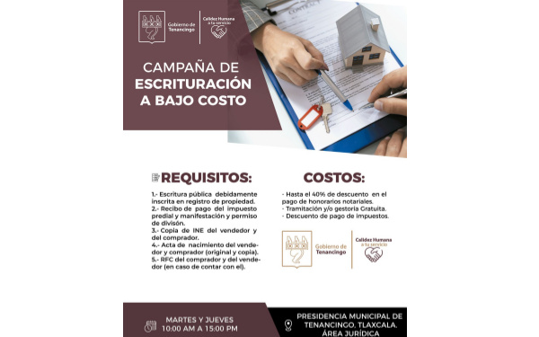Camapaña de escrituración a bajo costo en Tenancingo