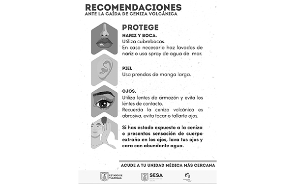 A través de la dirección de Protección Civil, el ayuntamiento de Tlaltelulco emitió recomendaciones para que los habitantes de esa demarcación tomen conciencia y sepan cómo tratar la ceniza y qué hacer para que no afecte su salud.