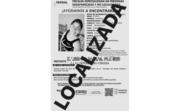 Tras recibir la denuncia en la que referían que la mujer fue vista por última vez en el municipio de Ayometla, elementos de Investigación iniciaron con las indagatorias correspondientes; sin embargo, recibieron una llamada telefónica en la mencionaban que la fémina se encontraba en las instalaciones de la Fiscalía, a fin de dar de baja su ficha de búsqueda.