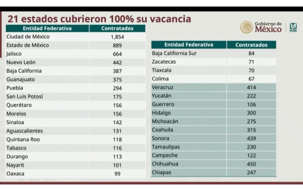 El titular del IMSS dijo que a nivel nacional las 21 entidades del país, incluida Tlaxcala, contrataron una cifra histórica de 9 mil 423 médicas y médicos especialistas de 70 disciplinas.