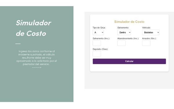 El simulador puede ser consultado en la página de internet oficial de la SMyT, https://smyt.tlaxcala.gob.mx/portal/, en el que el usuario ingresa el tipo de grúa, en su caso el tipo de salvamento, el tipo de vehículo, las horas del salvamento, las horas de abanderamiento, los kilómetros de arrastre y el número de días en el corralón, para calcular el cobro final que podrá hacer el prestador de los servicios.