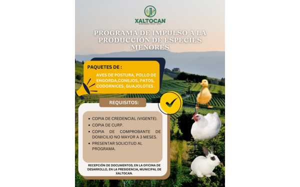 385 Grados / Xaltocan / REDACCIÓN / El Gobierno Municipal de Xaltocan, liderado por el Dr. José Luis Hernández Vázquez, anunció el Programa de Impulso a la Producción de Especies Menores, una estrategia diseñada para apoyar a las familias del municipio en la generación de ingresos adicionales mediante la crianza de especies como aves de postura, pollo de engorda, conejos, patos, codornices y guajolotes.